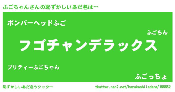 | ヒーロー風カッコイイあだ名 | 『仮面フゴダー』『超時空戦士フゴチャン』 |