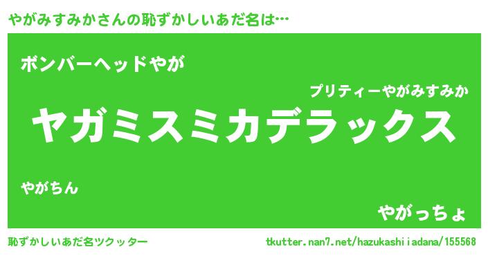 | 意味不明あだ名 | 『自称やがみすみか』 |