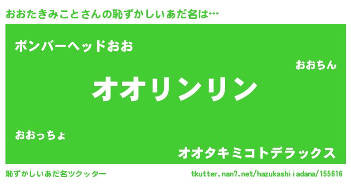| 男性向けラノベタイトル風あだ名 | 『おおたきみことの嫁は女の子じゃないと思った?』 |