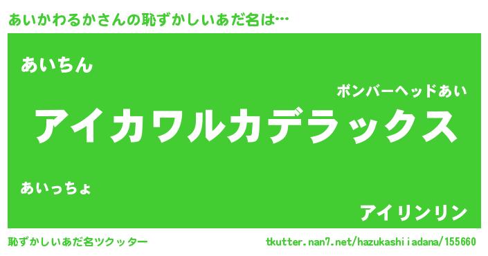 | 可愛いあだ名 | 『あいうちぇる』『あいかわるかママ』 |
