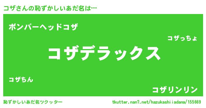 | ヒーロー風カッコイイあだ名 | 『仮面コザダー』『最強戦士コザ』 |