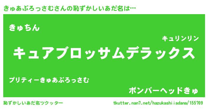 | ヘコむあだ名 | 『きゅあぶろっさむ(小並感)』『きゅぷりん』 |