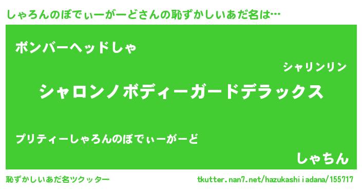 | 意味不明あだ名 | 『自称しゃろんのぼでぃーがーど』 |