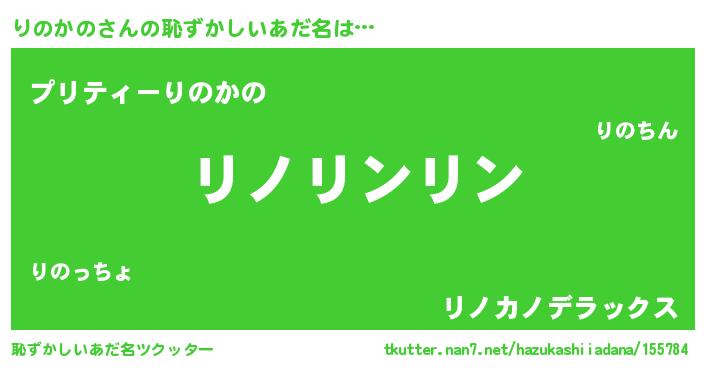 | 男性向けラノベタイトル風あだ名 | 『魔弾の王とりのかの』『りのかのの憂鬱』 |