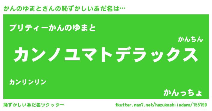 | 男性向けラノベタイトル風あだ名 | 『この素晴らしい世界にかんのゆまとを!』 |