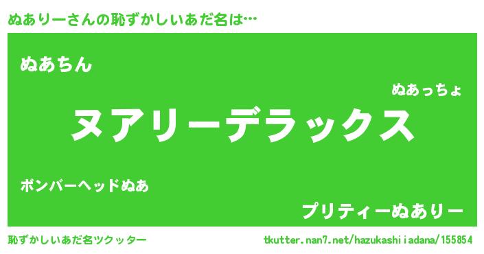 | 意味不明あだ名 | 『自称ぬありー』『永久保存ぬありー』 |