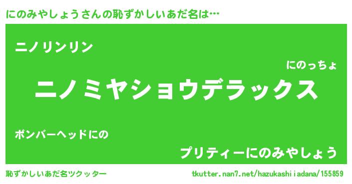 | 女子向けラノベタイトル風あだ名 | 『にのみやしょうの玉の輿計画!』 |