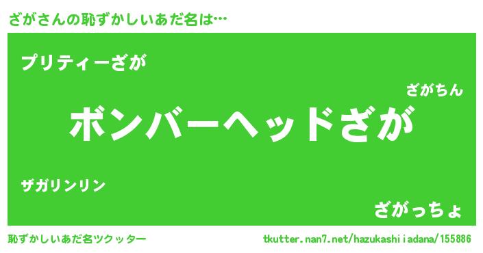 | 男性向けラノベタイトル風あだ名 | 『ノーゲーム・ノーザガ』『ざがの憂鬱』 |