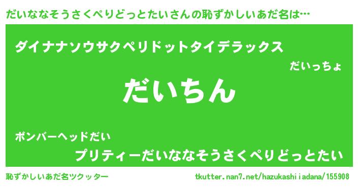 | 意味不明あだ名 | 『住所不定無職だいななそうさくぺりどっとたい(81歳)』 |