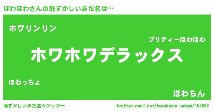 | ヒーロー風カッコイイあだ名 | 『最強戦士ホワホワ』『魔戒騎士ホワ』 |