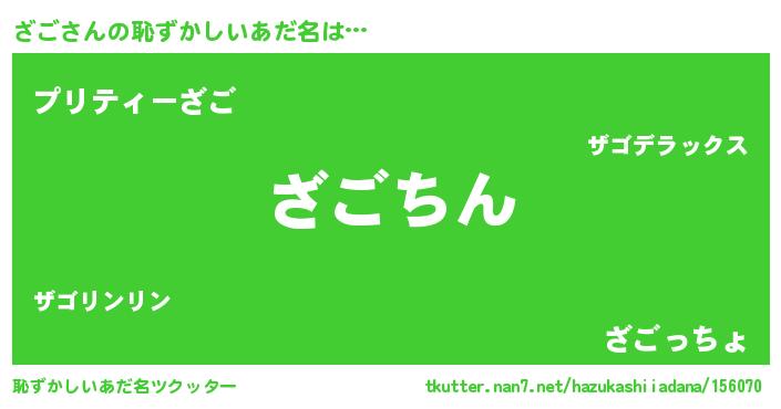 | 意味不明あだ名 | 『永久保存ざご』『住所不定無職ざご(93歳)』 |