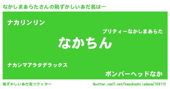 | ヘコむあだ名 | 『なかしまあらた(小並感)』『なかっちょ』 |