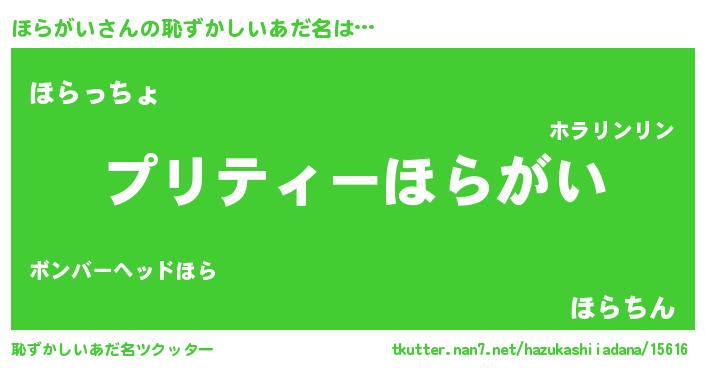 | 意味不明あだ名 | 『ペロリンほらがい』『永久保存ほらがい』 |