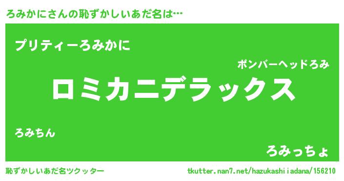 | 男性向けラノベタイトル風あだ名 | 『Re:ろみかにから始める異世界生活』 |