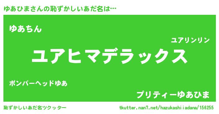 | 意味不明あだ名 | 『自称ゆあひま』『永久保存ゆあひま』 |