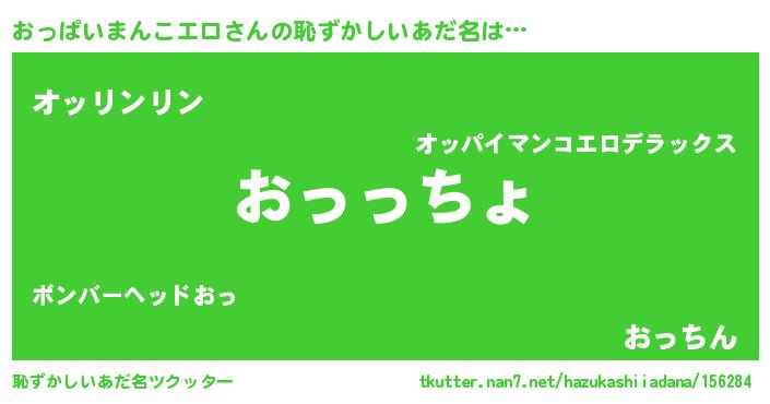 | 男性向けラノベタイトル風あだ名 | 『おっぱいまんこエロに滅ぼされるだけの簡単なお仕事です』 |