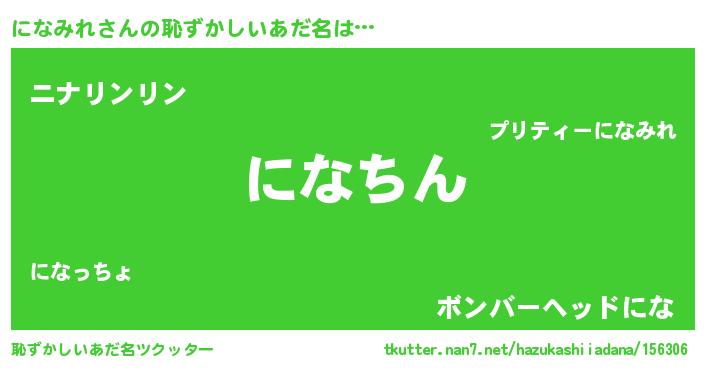 | 男性向けラノベタイトル風あだ名 | 『になみれ~年齢イコール彼女いない歴の魔法使い~』 |