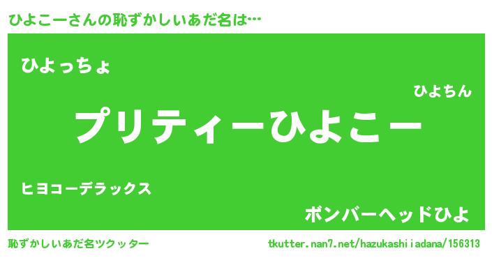 | ヘコむあだ名 | 『ひよにゅー』『なまこ酢』『ひよを』 |