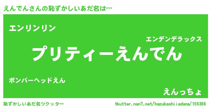| 男性向けラノベタイトル風あだ名 | 『魔弾の王とえんでん』 |