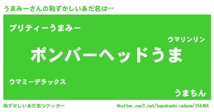 | ヘコむあだ名 | 『うまにゅー』『うまみー(笑)』 |