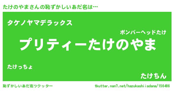 | ヘコむあだ名 | 『たけにゅー』『たけのやま(笑)』 |