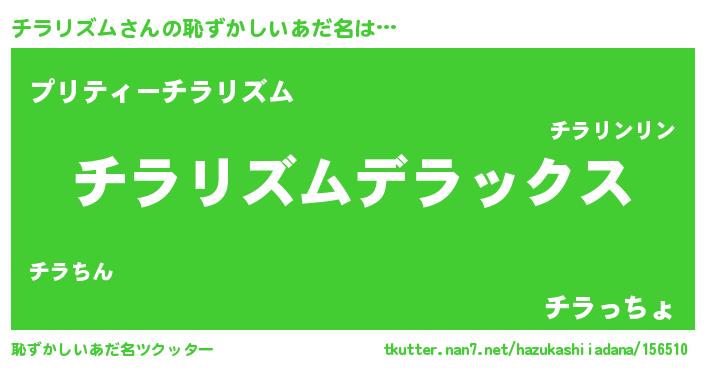 | 意味不明あだ名 | 『自称チラリズム』『ペロリンチラリズム』 |