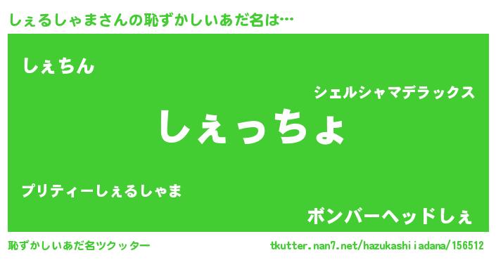 | 男性向けラノベタイトル風あだ名 | 『しぇるしゃま~年齢イコール彼女いない歴の魔法使い~』 |