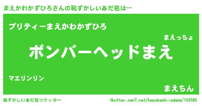 | 男性向けラノベタイトル風あだ名 | 『冴えないまえかわかずひろの育てかた』 |