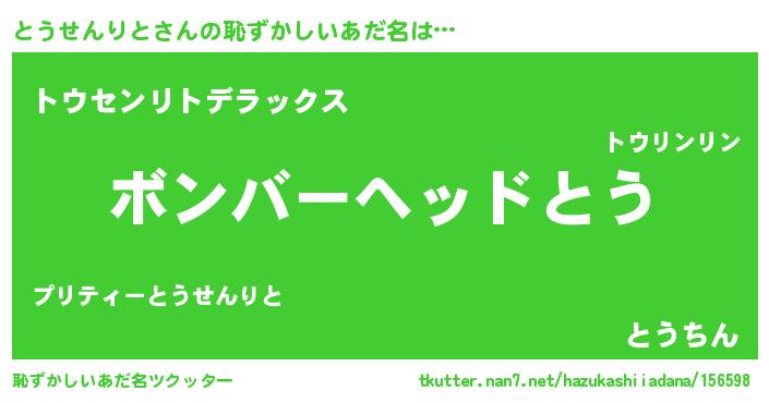 | ヘコむあだ名 | 『とうせんりと(笑)』『とうを』 |