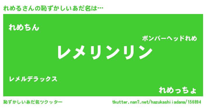 | 意味不明あだ名 | 『とにかく怪しいれめる』 |
