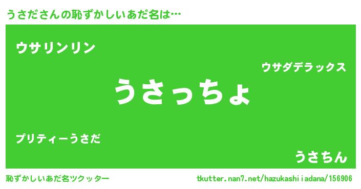 | 女子向けラノベタイトル風あだ名 | 『うさだの玉の輿計画!』 |