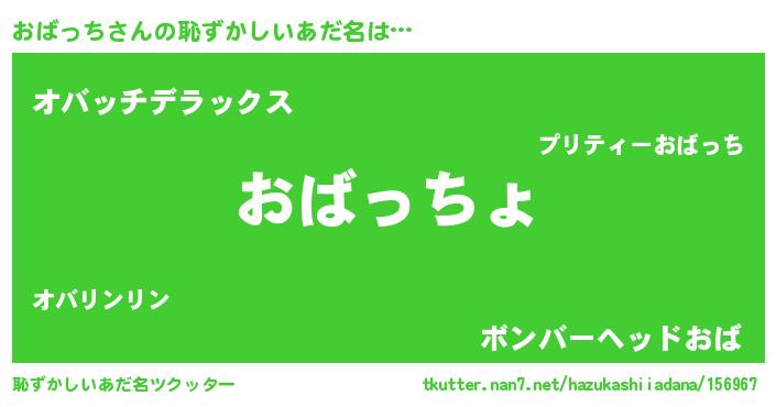 | 意味不明あだ名 | 『住所不定無職おばっち(77歳)』 |