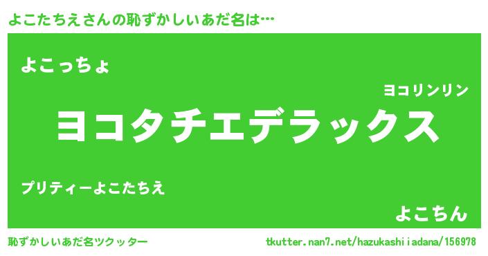 | 意味不明あだ名 | 『自称よこたちえ』『永久保存よこたちえ』 |