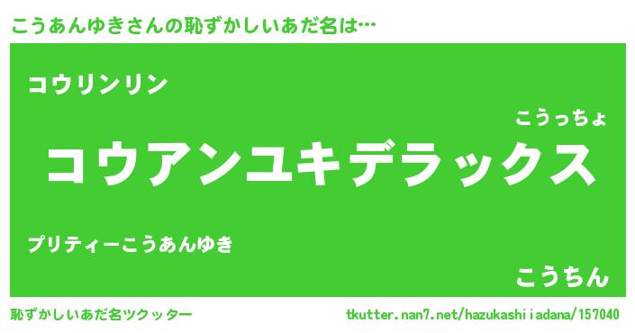 | ヘコむあだ名 | 『こうぷりん』『こうあんゆき(小並感)』 |