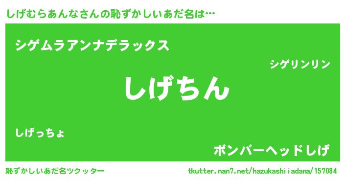 | 男性向けラノベタイトル風あだ名 | 『うちのしげむらあんなが世界を掌握している!』 |