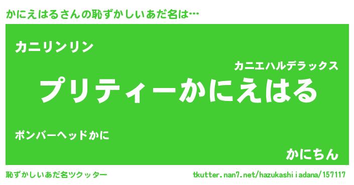 | 欧米人風あだ名 | 『トリンドルかにえはる』 |