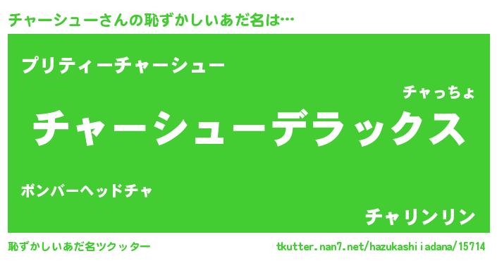 | ヘコむあだ名 | 『チャにゅー』『チャお』『なまこ酢』 |