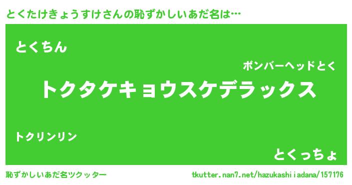 | 男性向けラノベタイトル風あだ名 | 『緋弾のトクタケキョウスケ』 |
