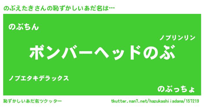 | ヘコむあだ名 | 『のぶえたき(笑)』『なまこ酢』 |