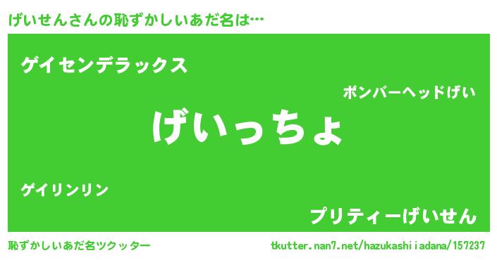 | 意味不明あだ名 | 『住所不定無職げいせん(11歳)』 |