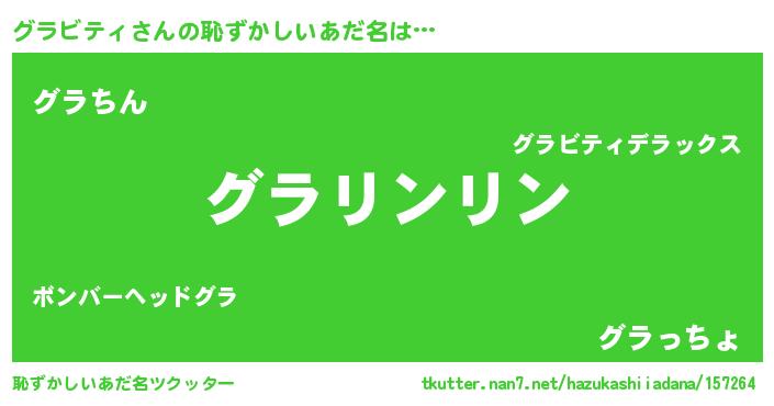 | 女子向けラノベタイトル風あだ名 | 『グラビティの玉の輿計画!』 |