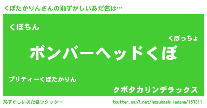 | 男性向けラノベタイトル風あだ名 | 『転生したらくぼたかりんだった件』 |