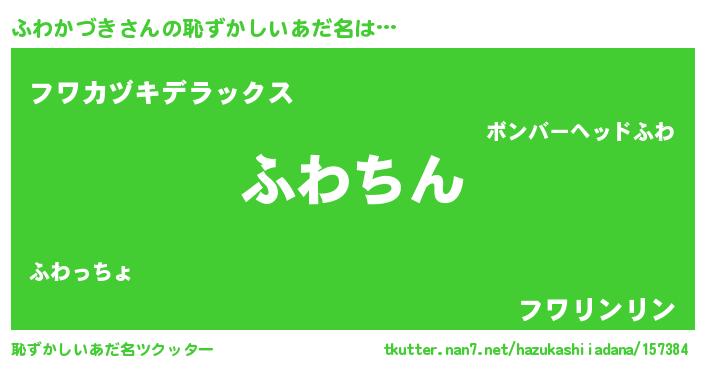 | ヘコむあだ名 | 『ふわかづき(笑)』『ふわぷりん』 |