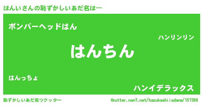 | ポケモン風あだ名 | 『ハーンイ』『ハンゴンZ』『ゼニハン』 |