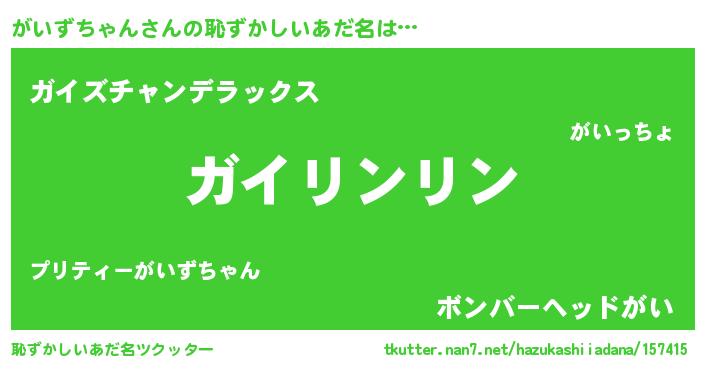 | 意味不明あだ名 | 『とにかく怪しいがいずちゃん』 |