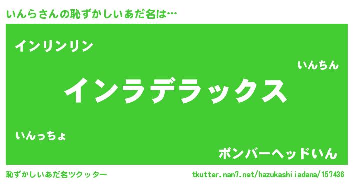 | ヘコむあだ名 | 『いんぷりん』『いんら(苦笑)』 |
