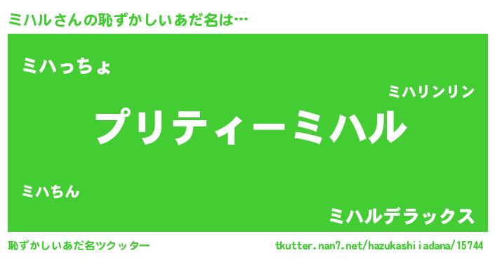 | ファンタジー風あだ名 | 『ミハフェル』『エターナルミハルー』 |