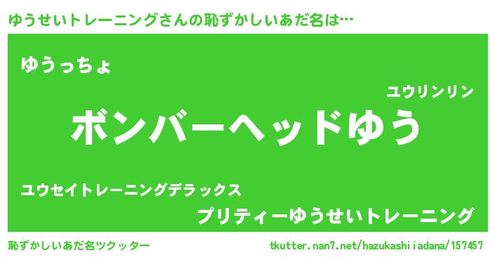 | 男性向けラノベタイトル風あだ名 | 『うちのゆうせいトレーニングが世界を掌握している!』 |