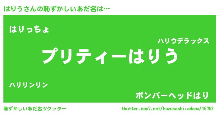 | ヒーロー風カッコイイあだ名 | 『スーパーハリウ』『ウルトラはりうマン』 |