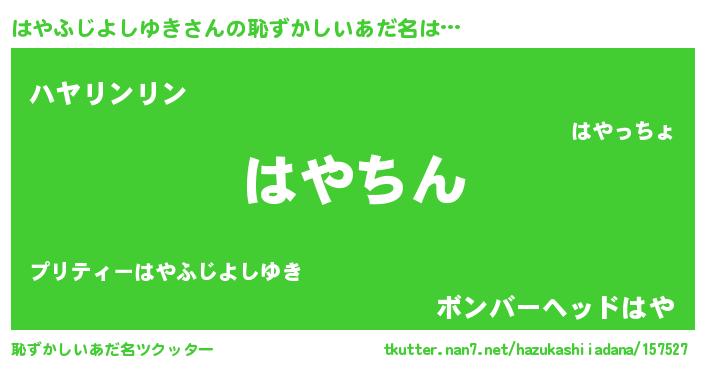 | 意味不明あだ名 | 『住所不定無職はやふじよしゆき(56歳)』 |